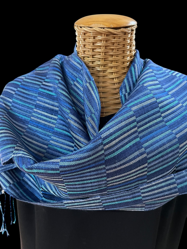 Blues : handwoven silk scarf